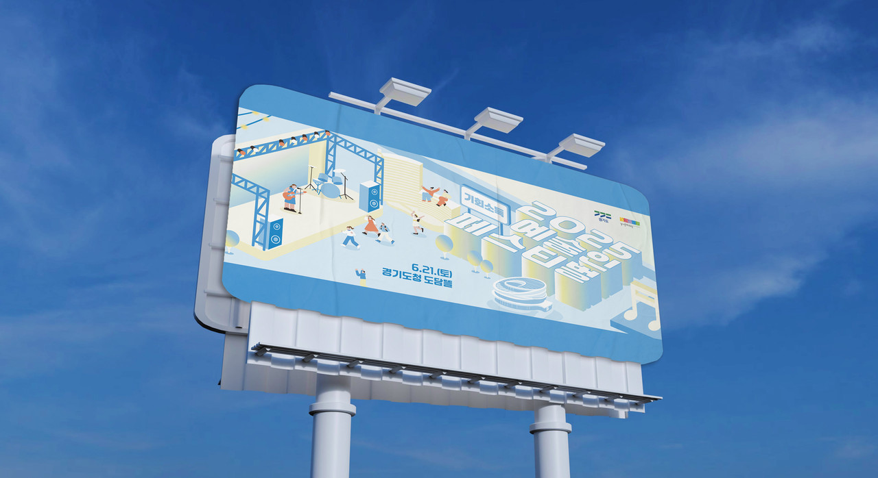 삭막할 수 있는 도심의 풍경을 음악과 축제가 흐르는 유쾌한 공간으로 탈바꿈시켰습니다. 3D로 구현된 타이포그래피 자체가 하나의 거대한 건축물이자 무대 장치가 되어, 도시 전체가 음악에 맞춰 춤추는 듯한 리듬감을 부여합니다.